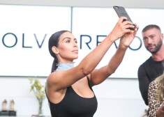 Apmeklējot apģērbu zīmola „Revolve” rīkoto pasākumu sabiedrības dāma Kima Kardašjana pārsteidza ar savu lapsenes tievo vidukli.