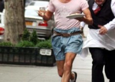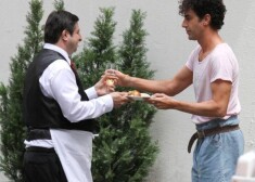 Borata lomas atveidotājs zog ēdienu no kafejnīcas apmeklētāju galda