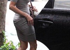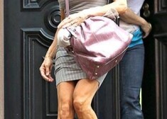 Kleitai pieskaņotie botiljoni Pārkeres smalko augumu vizuāli padarīja vēl smalkāku un trauslāku. Koptēlu viņa bija papildinājusi ar dūmakaini rozā „Nina Ricci” rokassomu.