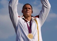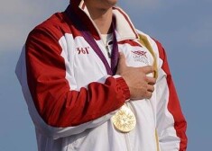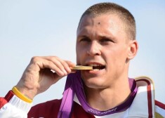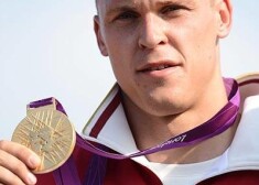 Māris Štrombergs līksmo par izcīnīto zelta medaļu