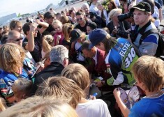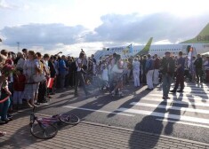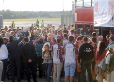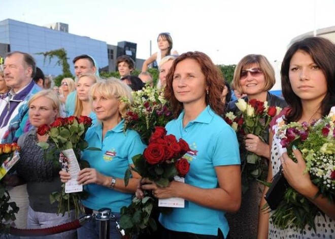 Līdzjutēji sagaida divkārtējo olimpisko čempionu Māri Štrombergu