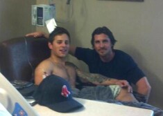 "Kristians Beils tiekas ar Auroras kinoteātra apšaudē cietušo Keriju Rotmenu," lasāms kādā tvītā, kam pievienotajā fotogrāfijā Beils redzams, sēžot blakus jaunam vīrietim.