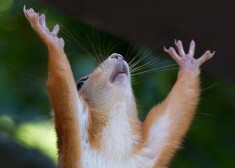 Britu fotogrāfam Martinam Patenam izdevies noķert apburošu fotomomentu – vāvere, pacēlusies uz pakaļkājām un ķepas izstiepusi pret debesīm, „lūdzas” riekstus.
