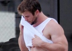 Kriss Hemsvorts izrāda savu atlētisko augumu