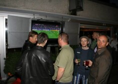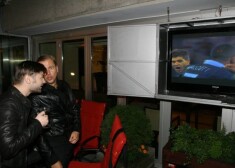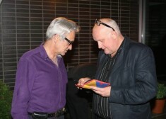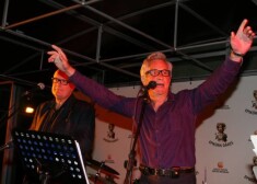 Aktieri ar jestrām dzīrēm svin sava krodziņa atvēršanu. FOTO