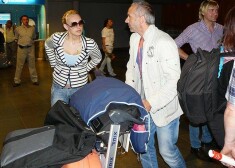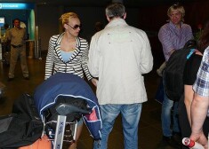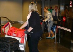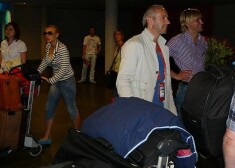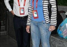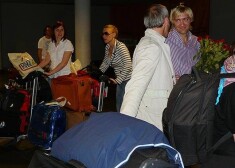 Anmary un producents Aigars Dinsbergs nupat ieradušies no Baku Rīgas lidostā. Abi mēro ceļu uz mājām kopā.