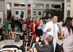 Sākumā viesi tika priecēti ar krāšņu koncertu, bet jau ap pusnakti visi laidās trakulīgās dejās. Jestro dejotāju kompānijā kasjauns.lv pamanīja pat eksbaņķiera Valērija Kargina šķirto sievu Tatjanu Karginu (51), kas dzīvo ēkā blakus viesnīcai, un kura arī mēdz apmeklēt šikās viesnīcas tematiskās ballītes.
