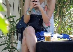 Skandalozā aktrise Lindseja Lohana ar draugu apmeklējusi festivālu platformas apavos uz ļoti augsta papēdīša.