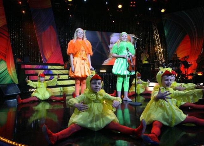 Šovā „Dvīņi dzied” brāļus Beļakovus savaldzina mazās konkurentes. FOTO. VIDEO