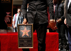 Ašers atklāj zvaigzni Holivudas slavas alejā. FOTO