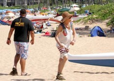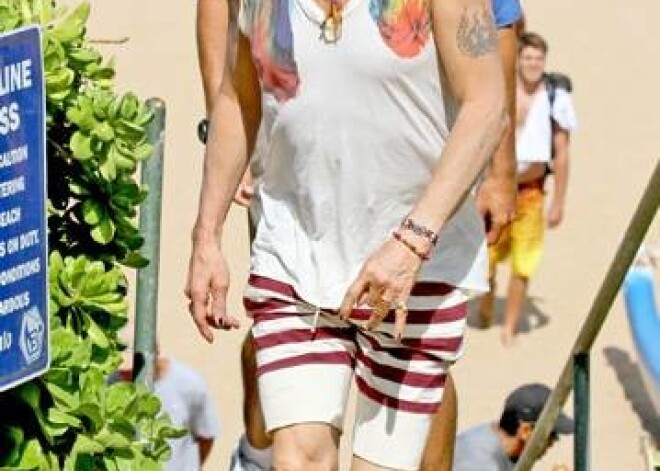 Grupas „Aerosmith” solists Stīvens Tailers savu 64. dzimšanas dienu pavadīja Havaju salās. Viņš kopā ar miesassargu devās uz pludmali.