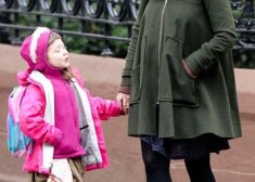 Vedot meitu uz skolu, amerikāņu aktrise Megija Džilenhola uzvilkusi siltu adītu jaku un ērta piegriezuma mētelīti, kam pieskaņojusi pavasarīgus un ļoti krāsainus apavus.