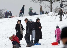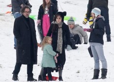 Helēna Bonema Kārtere kopā ar ģimeni bauda ziemas priekus