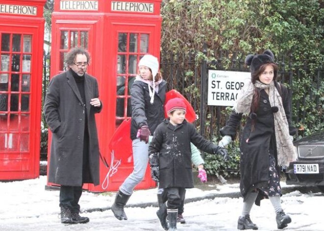 Aktrise Helēna Bonema Kārtere ar vīru, kinorežisoru Timu Bērtonu, un abiem bērniem devušies baudīt ziemas priekus Londonā. Bonema Kārtere izvēlējusies tērpu retro noskaņās: garu oriģināla griezuma mēteli un šalli, puķaina raksta svārkus un pelēkas siltas pusgarās zeķes. Apģērbu aktrise papildinājusi ar jautru cepurīti ar lāča austiņām.