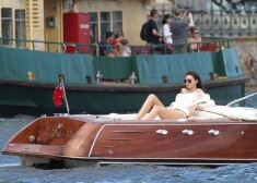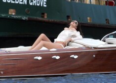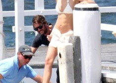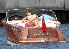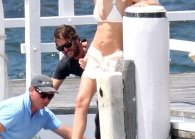 Tērpusies baltā bikini viņa pozēja motorlaivā, demonstrējot, ka deviņus mēnešus ilgais mazuļa iznēsāšanas laiks nav ietekmējis viņas augumu. Figūra izskatās lieliska.