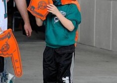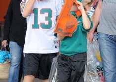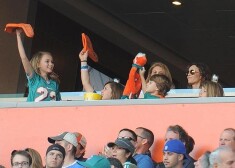 Džonijs Deps un Vanesa Paradī ar bērniem stadionā