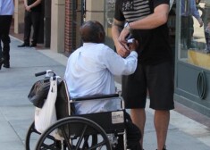 Kādā citā reizē citu bezpajumtnieku Rasels Brends aizvedis uz tuvējo ēstuvi un izmaksājis viņam pusdienas.