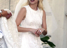 Holivudas dīvas Džūlijas Robertsas brāļa Ērika meita Emma Robertsa manīta baltu mežģīņu līgavas kleitā un ar plīvuru matos. Ar ko Emma apprecējusies?