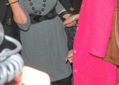 Stilīgā dziedātāja mūzikla apmeklējumam bija izraudzījusies rozā kleitiņu un tādas pat krāsas mētelīti. Pat matus Keitija nokrāsojusi tērpam pieskaņotā tonī! Arī vīramāte Barbara ir stilīga dāma, kas apģērbām izvēlējusies pelēkās un melnās krāsas salikumu, ko papildinājusi ar lielām rotām.