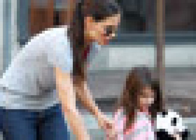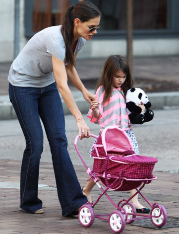Aktrise Keitija Holmsa ar meitiņu Suri izgājušas ielās ar leļļu ratiem. Šķiet, Suri todien nebija nosakņojuma spēlēt „mammās un bērnos” un stumt ratiņos guldīto lelli. Pūkainais panda lācītis viņai todien bija mīļāks par visiem.