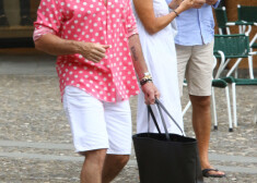 Sera Eltona Džona dzīvesbiedrs atpūtai Portofino kūrortā Itālijā izvēlējies koši rozā krāsas kreklu ar zirnīšu rakstu.