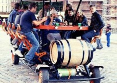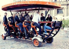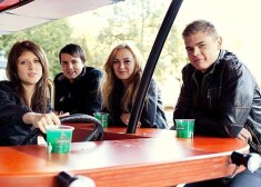 Grupa „4 Vēji” pa Vecrīgu vizinās alusipēdā