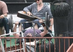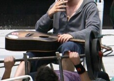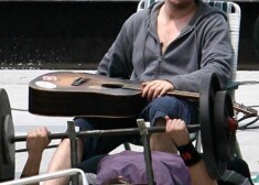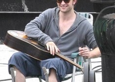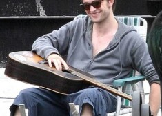 Roberts Patinsons ar ģitāru vēro svarcēlāju