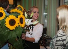 Slavenības ballītē apdāvina Aiju Andrejevu ar saulespuķēm