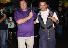 Teju vienīgie no Krievijas slavenību vidus, kas, šķiet, arī lietus laikā izbaudīja Jūrmalas romantiku, bija dziedātājs Igors Nikolajevs ar savu jauno sieviņu Jūliju.