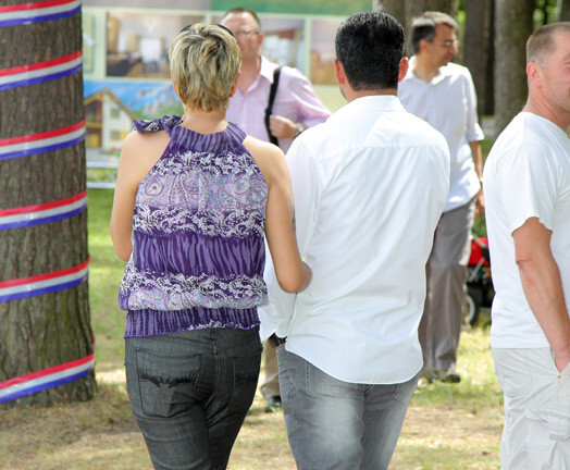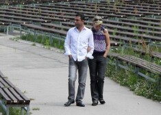 Tāpēc ASV vēstniecības rīkotajos svētkos Mežaparka Lielajā estrādē svētdien bija pārsteidzoši redzēt Mūrnieci un ģimenes tēvu Hosamu pastaigājamies brīžiem roku rokā, brīžiem draudzīgi uzliekam savu roku otram uz pleca.