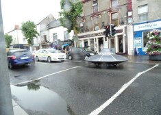 Internetā plašu ažiotāžu izraisījis transporta līdzeklis, kurš atgādina nelielu kosmosa kuģi. Tas braukāja pa Īrijas pilsētas Gorijas ielām.