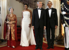 Obamu pāris, sagaidot Baltajā namā Singapūras premjerministru un viņa kundzi. Par godu Svinīgajai pieņemšanai ASV pirmā lēdija Mišela Obama izvēlējusies ...