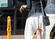 Baltā mežģīņu kleita visu skatienam atsedza Vanesas Hadžensas slaidās un skaistās kājas.