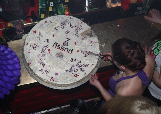 Pēc pusnakts visi kluba apmeklētāji tika cienāti ar gardu jubilejas torti, un „Pussy Lounge” saimnieki savā svinīgajā uzrunā solīja, ka bārs būšot atvērts arī pēc septiņiem rītā, līdz pat svinības būs nogurdinājušas pat visizturīgākos viesus.