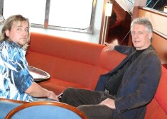 Olga Rajecka ir priecīga par atkalredzēšanos ar „Tallink” kruīza menedžeri Andri Engeru. Pateicībā par labu sadarbību viņa Andrim dāvina savus mūzikas ierakstus.