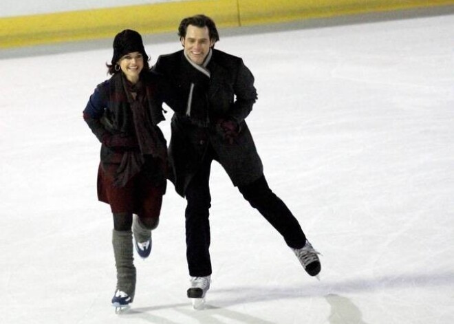 Komiķis Džims Kerijs kopā ar aktrisi Karlu Džudžino nesen kā izpriecājies „Wollman” slidotavā Ņujorkas Centrālparkā.