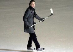 Kerijs ne tikai demonstrēja savas hokeja spēlētāja iemaņas, bet arī centās veikt dažus daiļslidošanas elementus. Slidotavā filmēja ainu jaunajai filmai „Mr. Popper’s Penguins”, kam uz ekrāniem plānots iznākt nākamā gada augustā.