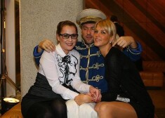 Lielāko daļu vakara Rēzija atpūtās Prāta vētras mūziķu kompānijā, kas jubilejas koncertā bija gādājuši par Šveika garu, bezrūpīgi jokojot. Manot Kas Jauns fotogrāfa pievērsto uzmanību, aktrise izspēlēja ballīšu karalienes cienīgu gājienu un sirsnīgā skūpstā saplūda ar „prātinieka” Kaspara Rogas draudzeni Evitu Liepiņu.