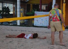 Pludmales centrā „Brazīlija” notika vēl nebijušas sacensības pludmales volejbolā - mūziķi Aisha un Artis Dvarionas, spēkavīrs Raimonds Bergmanis, aktieris Rihards Lepers, kamaniņbraucēja Maija Tīruma un bārmenis Andris Reizenbergs stājās pretī Latvijas pludmales volejbola karalim Aleksandram Samoilovam.