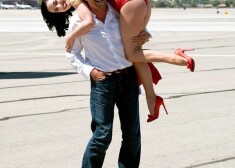 Kā redzams bildēs, fotosesija izdevusies lieliski. Tās sākumā Brensons izkāpa no lidmašīnas, nesot Ditu fon Tīsu sev uz pleciem, bet pēc tam devās kopīgā pastaigā pa lidmašīnas spārnu.