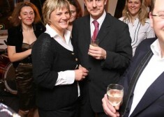 Tāpat kā pārējie viesi, uz skatuves sumināt namamāti Binniju ar dziesmu kāpa arī Jānis Krēvics. Tikām skatuves priekšā dejojot ar kolēģēm pazīstamo žurnālistu atbalstīja viņa draudzene Evija Kerija.