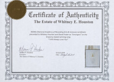 Izsolē piedāvās arī divas Vitnijas pases. Pirmajā dziedātāja parakstījusies kā Vitnija Elizabete Hjūstone. Tajā ir daudzu dažādu valstu vīzu un zīmogu. To skaitā Francijas, Japānas, Brazīlijas, Nīderlandes, Lielbritānijas un daudzu citu. „Šī pase glabā vēsturi par iemīļotās dziedātājas pirmajām pasaules turnejām,” teikts izsoles priekšmetu aprakstā.