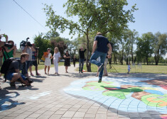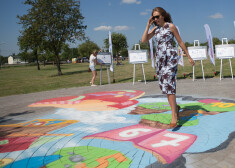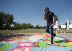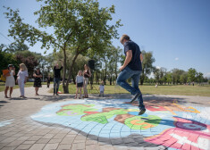 Lucavsalā, piedaloties iniciatīvas “Mīļākā pagalma spēle Latvijā” noslēguma tusiņā daiļā pasākuma vadītāja Anna Rozīte un Rīgas mērs Nils Ušakovs ar dzīvesbiedri Ivetu Strautiņu-Ušakovu ņipri lēkāja bērnu tik iemīļoto spēli klasītes.