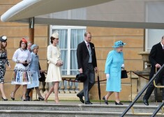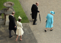 Viņas Majestāte Anglijas karaliene Elizabete II uz dārza svētkiem ieradās gaiši zilā mētelī, ko darinājis zīmols „Stewart Parvin”. Viņa tam bija pieskaņojusi atbilstošas krāsas „Rachel Trevor-Morgan” cepuri. Karalieni uz dārza svētkiem pavadīja viņas vīrs Edinburgas hercogs princis Filips, kurš šā gada 10. jūnijā atzīmēs jau 95. dzimšanas dienu.