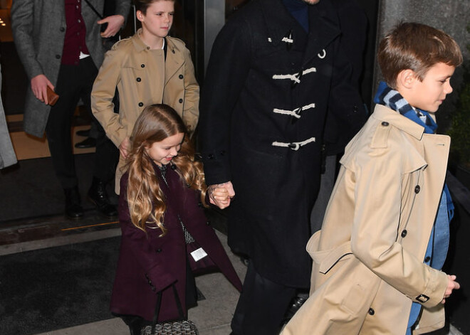 Deivids Bekhems ar bērniem dodas uz Viktorijas Bekhemas modes skati