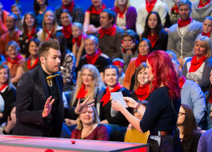“Tūlīt sprāgs!” – šova “Es mīlu Tevi, Latvija!” vadītājs Artūrs Skrastiņš brīdina spēles dalībniekus.