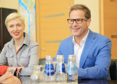 Rīgā treneri sagaidīja pilsētas domes priekšsēdētāja vietnieks Andris Ameriks. Aiz aizvērtām durvīm abi runāja par golfa attīstības iespējām Latvijas galvaspilsētā.