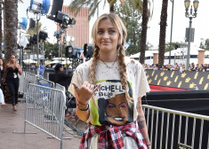 Sarkanā paklāja dumpiniece izraudzījusies zīmola „The Spiders From Arts” t-kreklu ar bijušās ASV pirmās lēdijas Mišelas Obamas portretu un uzrakstu „Michelle My Belle”.