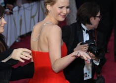 Dženifera Lorensa paklūp uz sarkanā paklāja