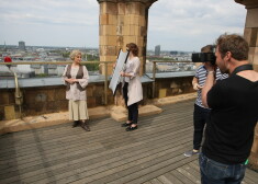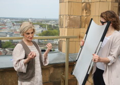Koncertuzveduma “Tobāgo” atraktīvā aktieru fotosesija virs Rīgas jumtiem